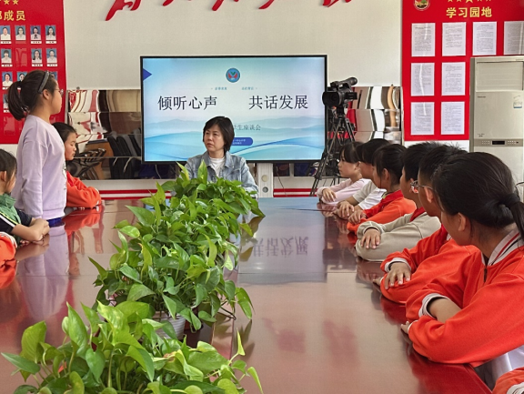 倾听每一声细语,践行每一份承诺。为了让学生管理更加精细,校园服务更加周到,让同学们在学校舒心生活、静心学习,青云店镇第一中心小学4月15日召开了“倾听心声 共话发展”学生座谈会,青一小书记、校长王炳玉及各班学生代表参加此次座谈会。