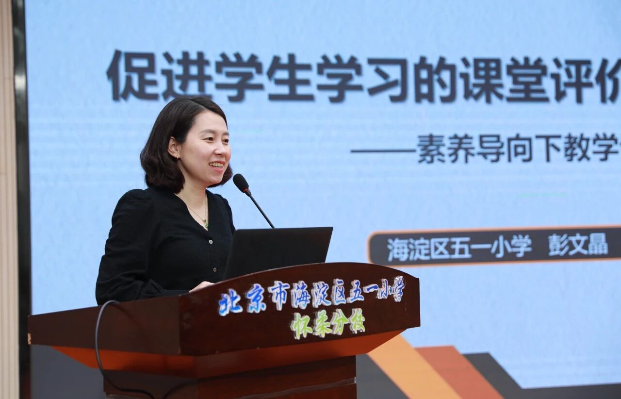 随后,彭文晶主任带来了题为《促进学生学习的课堂评价设计与实施——素养导向下教学评一致性思考与实践》的专题讲座。彭主任从评价如何从“甄别”转向“促进”、如何在教学过程中嵌入评价实现“教-学-评”动态融合等核心问题出发,详细阐述了评价促进学生学习的教学设计流程和课堂实施路径。