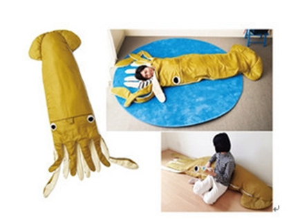 据报道,近日,日本某生活杂货品牌推出了一款“大王乌贼睡袋”,设计亮点在于人们从其口部钻进去睡觉的时候,就好像被大王乌贼吃掉一样。
