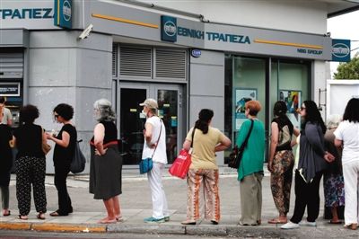 公投消息发出后,经过一个周末,希腊全国5500台自动取款机,有约2000台被取空,仅仅在6月27日一天,就有约5亿~6亿欧元被取走。