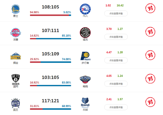 明日NBA共有7场比赛,包括公牛vs快船等多场焦点对阵。NBA智能利用大数据分析对明日赛果已有初步判断,速去点击查看。