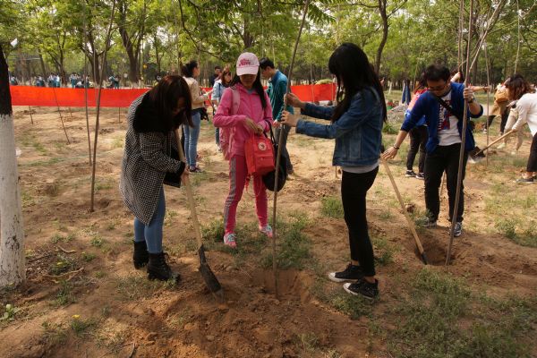 在京郊的紫谷伊甸园里,槐花飘香,油菜花开得正艳,有大片的荒地有待开垦。青年教师们两人一组开始了植树活动。挑选树种、拿铁锹,一切准备就绪后大家开始干活。植树现场,从整地挖坑,栽植树苗,到扶正树苗,封土压实,再到提水浇灌,各道工序有条不紊,呈现出了一派热火朝天的劳动景象。虽然每个人只种了一棵树,看起来似乎微不足道。但当大家看见自己亲手种下的树就在那里,想象着有一天它会长大时,一种成就感和满足感油然而生,这是青年教师们努力回报社会、贡献社会、美化地球的一次亲身实践。