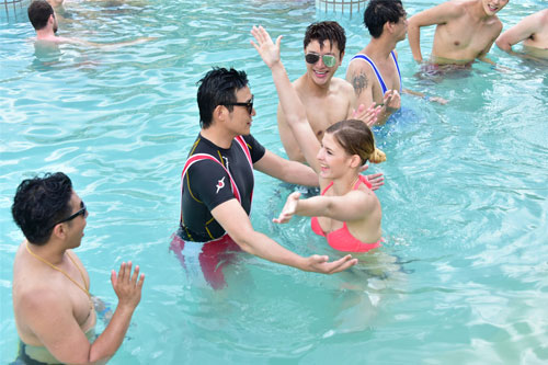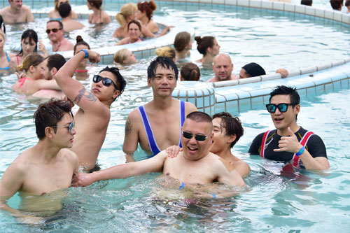人民网北京7月23日电(唐平)东方卫视《花样男团》将于今晚20:30在东方卫视迎来第六期。郭德纲带团温泉“泡澡”,一群大老爷们穿着东北风、欧美风、运动风的泳装混搭着“最高”颜值和“超有料”的身材,画风十足辣眼睛!怪不得郭德纲都感慨道:“别躲了!快出来给大家看看,你们太好看了!”