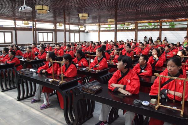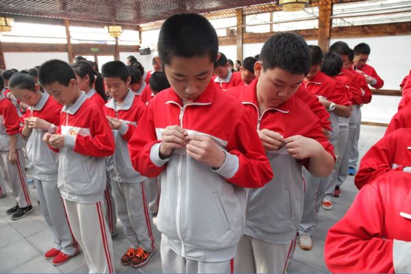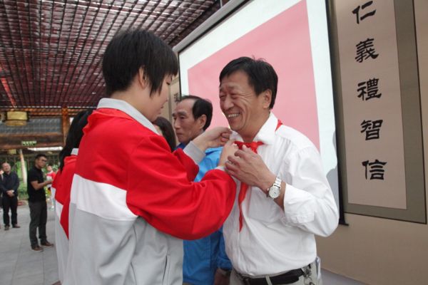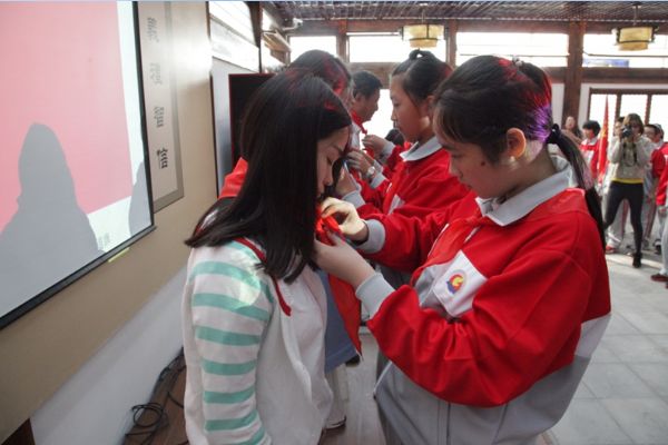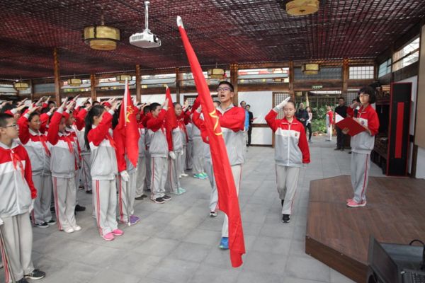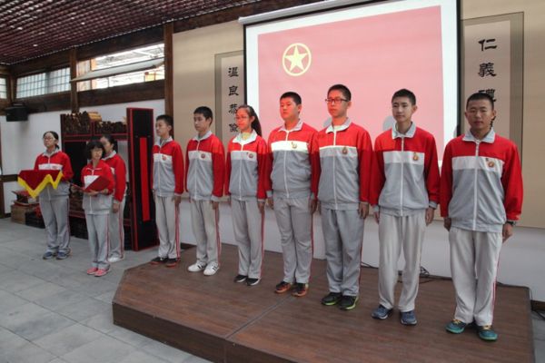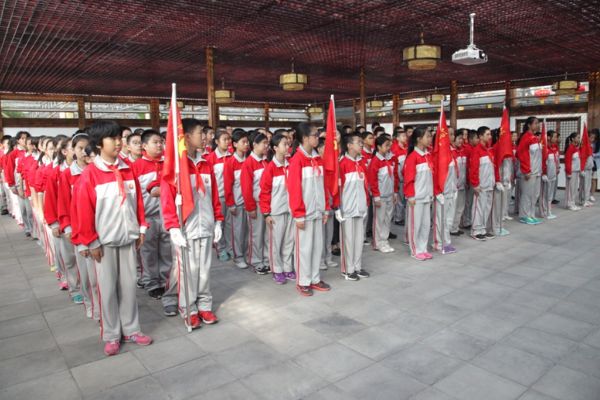 在庄严的国歌和雄壮的队歌声中,全体初一年级学生在汉风耕读苑开始了庄严而神圣的建队仪式。各班少先队员为辅导员老师们佩戴上了鲜艳的红领巾。“我们是共产主义接班人”这纯真而又慷慨激昂的声音,正是全体新队员的郑重承诺。