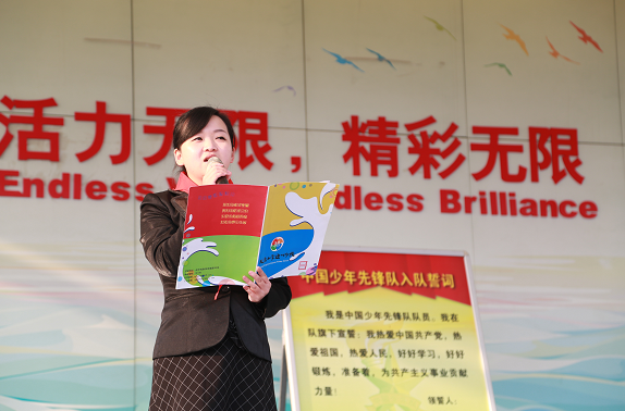 二年级194名小同学加入了少先队,在鲜红的队旗下,由六年级大哥哥大姐姐为他们戴上红领巾。入队仪式在规范中创新,加入了党团队旗飘起来环节,由教委组宣科干部,一年级学生家长丛叔叔为大家介绍了党旗的含义,我校优秀青年团员娄琳老师介绍了团旗,新队员代表用朗诵的形式介绍了队旗。新老队员不仅知道了党、团、队旗的意义和它们之间的关系,同时也明白了“红领巾是红旗的一角”这这句话的深刻含义。决心要用实际行动为红领巾增光添彩!