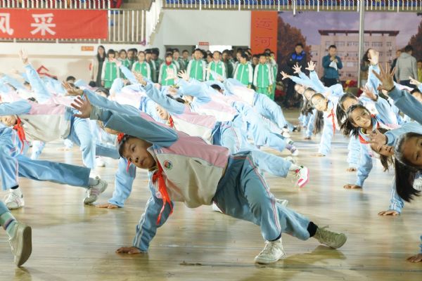 活动一开始就是由来自该校160名学生为大家展示呈现的自编主题素质操“海燕”,整齐划一、舒展有力的肢体语汇展现出了孩子们持之以恒的坚持、激昂洋溢的斗志、团结协作的凝聚力以及永不服输的精神。