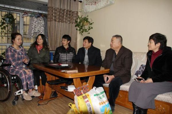 杨荫东仔细询问了宋老师的生活情况及健康状况,对宋老师为学校发展和教育事业做出的贡献表示衷心感谢,并祝愿她身体健康,家庭幸福。宋老师对领导的关怀倍感温暖,表示会继续坚强、乐观地面对人生,积极参加残疾人公益活动,实现自己的人生价值。
