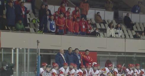 冰球女子单循环赛的中韩大战现场迎来了一群特殊的观众——中国冰壶队的队员们,双双闯入决赛的男女冰壶全队的教练的带领下来到了冰球馆为中国女子冰球队助威。只不过,可惜的是中国队在点球大战中与韩国队纠缠十轮,最终仍以2-3遗憾告负,获得冠军的几率很小。