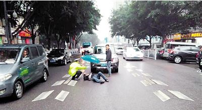 当天上午10时45分左右,渝北区紫薇路重庆市第一中级人民法院小区西门路段,一名横穿马路的中年男子被一辆面包车撞倒在地,不能动弹。骑车巡逻路过此地的渝北区公安分局交巡警支队民警洪铭阳和莫杰文,立即上前处置,查看伤情,迅速向支队指挥室报告并通知120救护车。