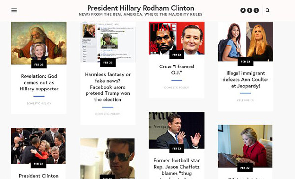 据英国《每日邮报》2月23日报道,一家支持希拉里·克林顿的幻想新闻网站标榜自己刊登的都是“真正的美国新闻”,且“大多数人可参与美国国家事务管理”。此外,该网站还虚拟了希拉里当选第45届美国总统后的二元世界。