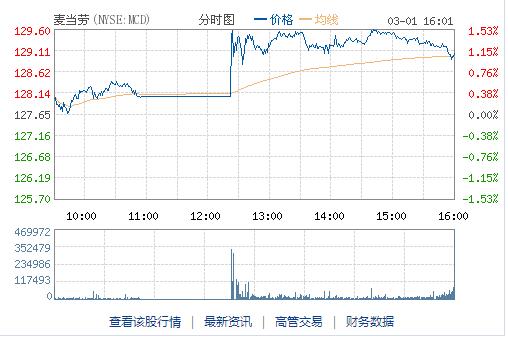此前暂停交易的麦当劳股票开始交投,市场目前反应正面,涨幅从暂停交易前的0.33%提升至1.4%,过去一年时间里则累计上涨了8.8%,相比之下道琼斯工业平均指数同期上涨23.4%。