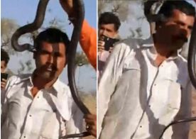 [环球网综合报道]据英国《每日邮报》4月10日报道,近日,印度拉贾斯坦邦焦特普尔的一名男子在和眼镜蛇互动的过程中,意外被眼镜蛇咬到了脸颊,1小时后便中毒身亡。