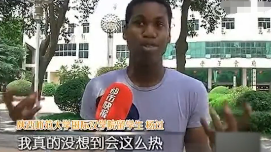 近期,我国大部地区高温天气横行。中央气象台预计,未来10天大范围高温天气仍将主宰我国,高温日数普遍可达5-9天。究竟有多热,在中国留学的非洲小伙杨过说……