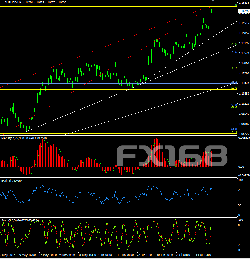 FX168财经报社(香港)讯 周五(7月21日)亚市午后,欧元(1.1643, 0.0010, 0.09%)/美元位于1.1630附近水平徘徊。