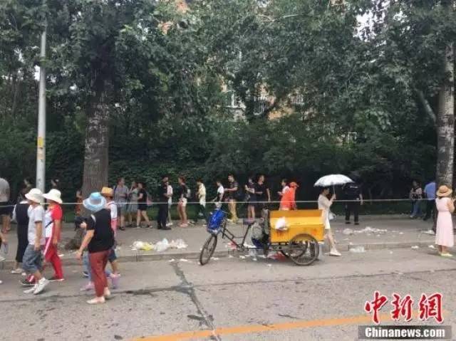 排队等待进入学校参观的游客。暑期清华北大游客爆满 排队游客留下遍地垃圾
