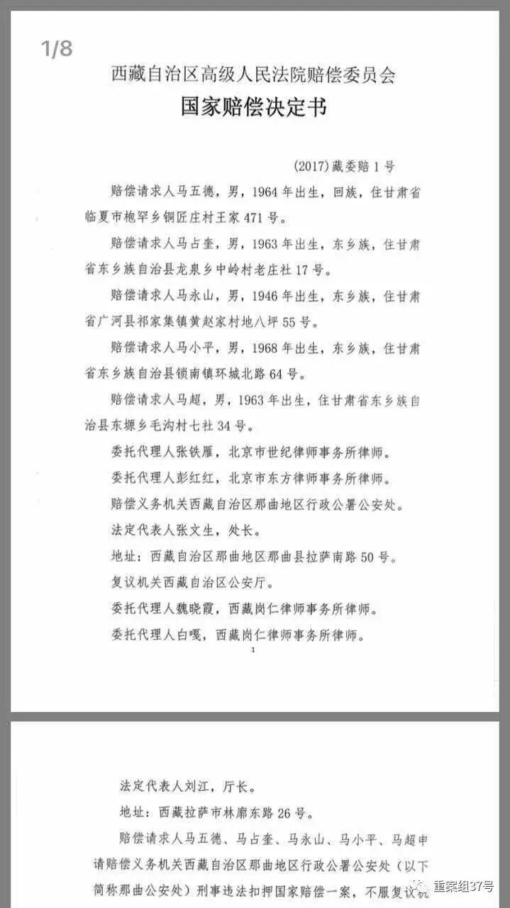 2017年8月2日,西藏自治区高级人民法院做出《赔偿决定书》,要求当时查扣黄金的公安机关对马占奎等5人支付1100万元国家赔偿。案件的代理律师接受重案组37号(微信ID:zhonganzu37)采访时表示,刑事案件的涉案财物必须根据生效的裁判文书处理,刑事诉讼中经依法认定不构成犯罪的涉案财物,应当及时退还,法院因此做出了国家赔偿的决定。