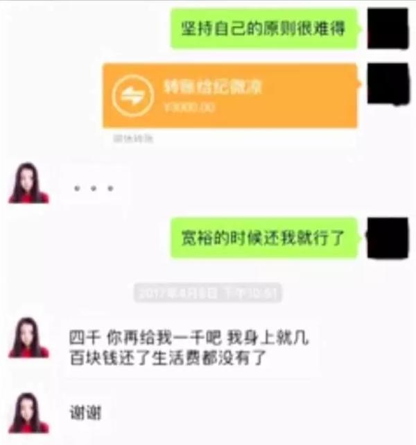 听说要陪酒,杨某心生怜香惜玉之心,立马转账3000元给“纪微凉”,让其去还债。收到转账后,“纪微凉”又称自己没有生活费了,让杨某再给自己转账1000,并称自己会做兼职,每个月还给杨某800元。但让杨某纳闷的是,怎么约“美女”见面,对方都不愿意,想到可能是小女生害羞,也没多想。