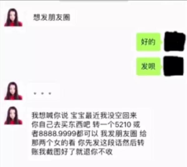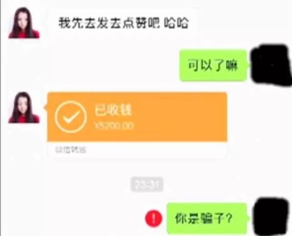 又过了几天,“纪微凉”称她同学都在朋友圈炫耀男朋友发的红包个数和金额,她也想“秀秀”,随后又让杨某给其转5210或者8888、9999配合她“炫耀”,为取得杨某信任,她还说:“你发了红包我不会收,只截图发个朋友圈就好,24小时系统自动退还。”听“纪微凉”这么一说,杨某又向其转账5200元,万万没想到“纪微凉”竟然“秒收”红包,并随即拉黑杨某,此刻的杨某才意识到自己上当受骗了,并报警。