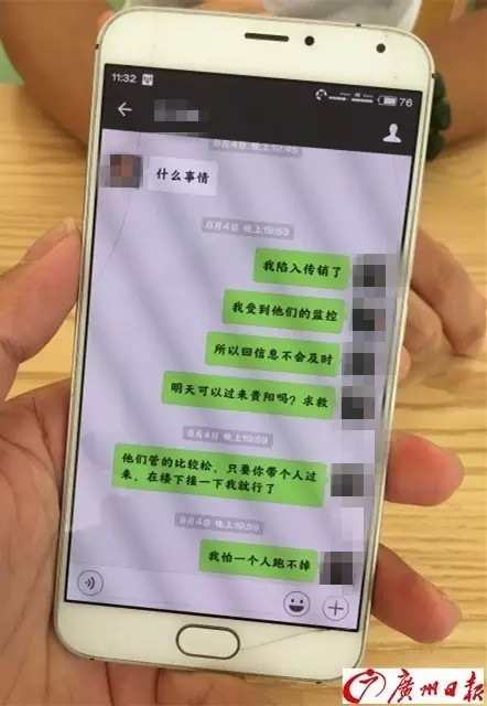 8月1日至6日,在不到一周的时间里,25岁的陈强(化名)经历了惊险事件。 8月1日,他被大学室友骗到贵阳“做生意” ;8月4日,发现自己遇上传销,他开始策划逃跑 ;8月5日,凌晨3时,他逃出传销窝点; 8月6日,他终于安全返回广州。7日,他找到广州日报记者 讲述了这几天的经历,希望引起公众警醒。
