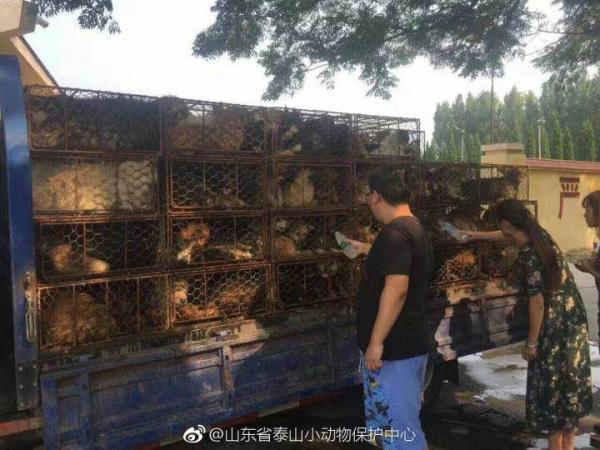 8月5日下午,一辆装载有260余条狗的货车在京台高速公路山东曲阜服务区内被爱狗人士拦下,从山东各地陆续赶来的上百名动物保护志愿者筹集并支付给车主两万多元将狗全部赎买。