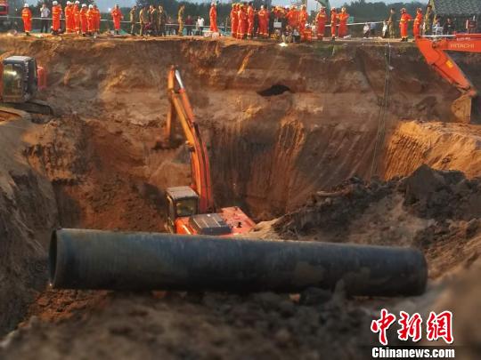 经救援人员勘查,此井下有水,孩子被卡在井下12米左右位置,由于井口直径仅30厘米左右,成人无法下井实施救援。消防人员首先启用救援设备,向深井内输送氧气,确保孩子呼吸顺畅,并及时向井下输送水和食物,给孩子补充体力。救援现场集结了多辆大型挖掘机和铲车,对深井周围的土壤进行挖掘,对小孩进行施救。