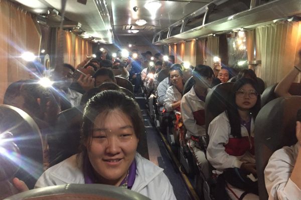 三个小时的车程,难免有些单调沉闷,宋校长为我们组织了一场别开生面的歌唱联欢会
