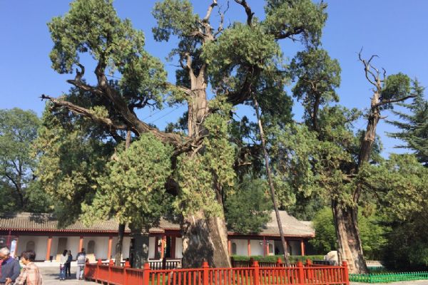 轩辕柏耸立在桥山脚下的轩辕庙内,侧柏树高20米以上,树围7.8米。历经5000余年的风霜雪雨,至今仍干壮体美、枝叶繁茂,整个树冠覆盖面积达178平方米,树围号称"七搂八扎半,疙里疙瘩不上算"。由于世界上再无别的柏树比它年代久远,因此,它被称为"世界柏树之父"