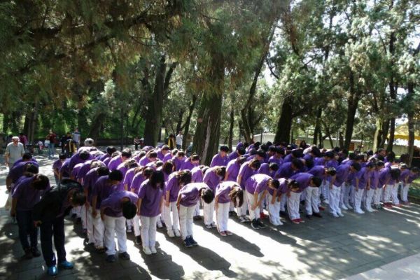 同学们和老师们都对黄帝致以崇高的敬意,王建洪主任献上了花篮,宣读了祭词,老师同学虔诚地鞠躬,以表达对黄帝的尊敬。