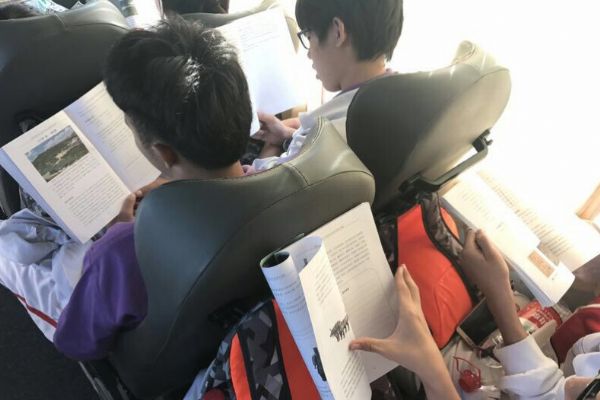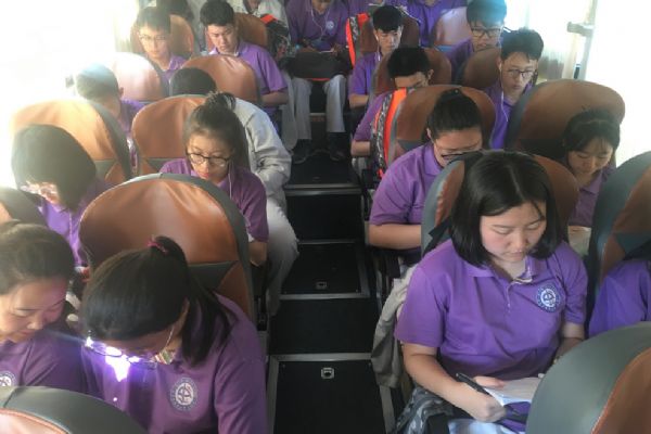 三小时的车程,我们没有浪费,在车上,我们认真学习研学课程,努力记忆消化途中的所见所闻