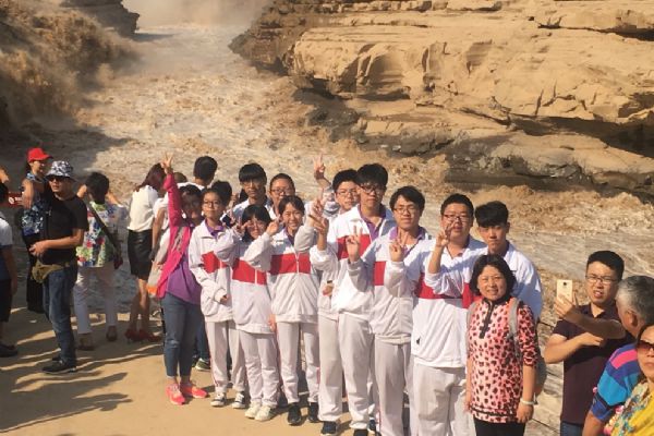 告别黄帝陵,我们乘大巴车前往延安黄河壶口瀑布。同学们都怀着激动的心情,想要一睹黄河壮美的风景。