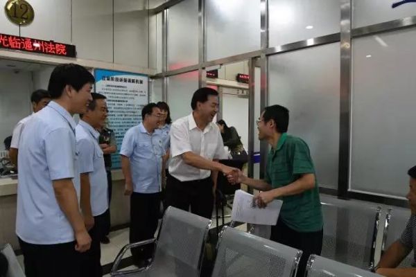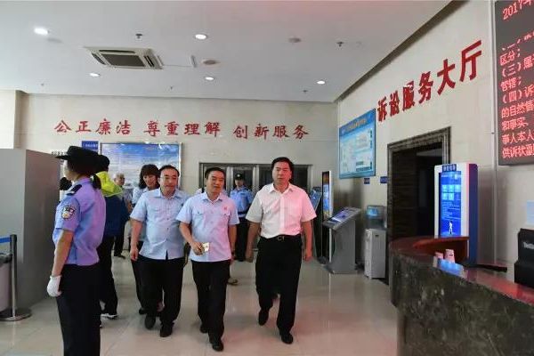 姜启波庭长一行首先来到通州法院第二审判区一层诉讼服务大厅,视察通州法院立案及诉讼服务工作。