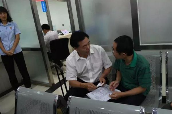 在立案大厅,姜启波庭长与前来立案的当事人亲切交谈,询问当事人在立案阶段遇到的问题和困难,征求当事人对立案流程及导诉服务的意见和建议。