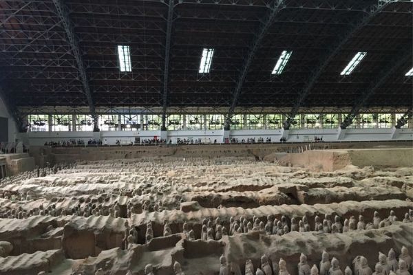 秦始皇兵马俑被誉为"世界第八大奇迹",先后有200多位外国元首和 政府首脑参观访问,成为中国古代辉煌文明的一张金字名片,被誉为世界十大古墓稀世珍宝之一。