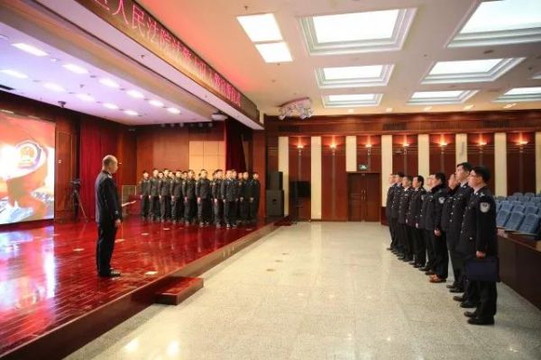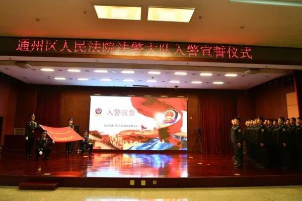 王东志总队长一行参加了通州法院法警大队新警入警宣誓仪式。这是通州法院法警大队建队以来首次举行入警宣誓仪式,通州法院法警大队也是《人民法院司法警察入警誓词》新修订后,全市范围内首家举行入警宣誓的警队。宣誓仪式不仅强化了新警的职业荣誉感与认同感,也激发了全体司法警察的使命感、责任感和尊荣感。