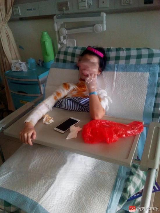 南都记者今日在市人民医院见到被烧伤的阿超时,除了脸部没有大的烧伤面外,胸部、背部以及四肢均有比较大的烧伤面。记者到访时,阿超的父亲欧先生正在为女儿办理出院手术。“现在已经花了11万多的医疗费,还欠下医院近1万。这才做了一次手术,接下来还有两次手术要做,实在是没有钱了,只能是先出院再想办法了。”欧先生无奈的说。
