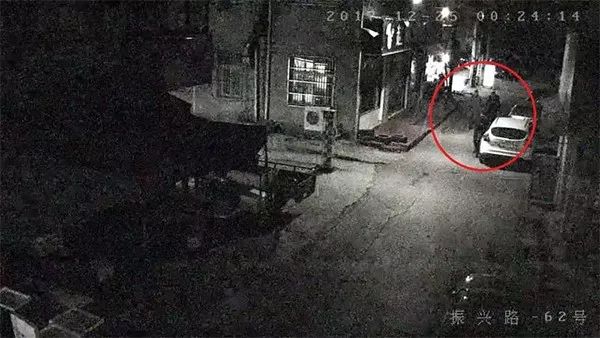 从监控视频中可以看到,12月25日凌晨0点24分,三个年轻男子一起走在振兴路上,忽然,走在前面的一个男子掏出钥匙,伸手就往停在路边的车上划。