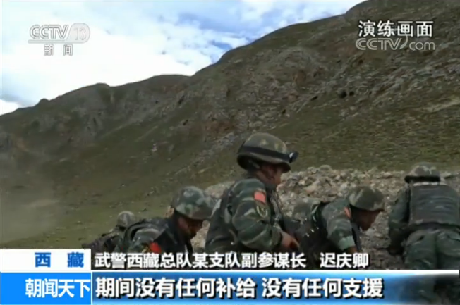 武警西藏总队某支队副参谋长 迟庆卿:队员们要在8个小时内,连续完成近百公里范围内设置的六大类反恐课目考验。期间没有任何补给,没有任何支援,考验的就是特战队员在超体力透支、超极限运动状态下的完成任务能力。