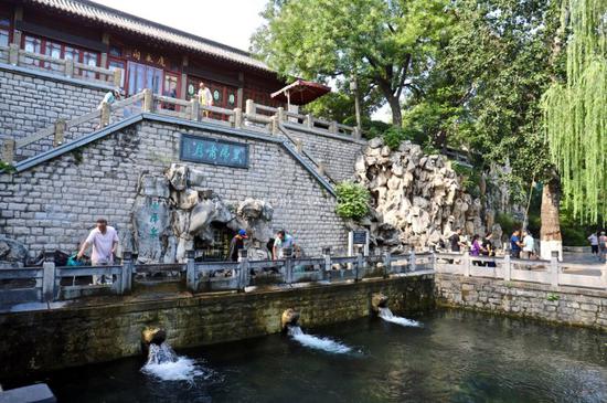 3。 趵突泉:趵突泉群是济南最有名的公园,游人自然也是最多,可以在济南香格里拉大酒店吃完早饭就步行过去,赶在大批游客入园之前,闲庭信步,悠哉游哉。里面两元一碗的大碗茶不可不尝,泉水泡制,消凉解渴。