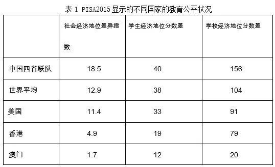 通过评价学生的学习能力、学习意愿和学习动力,看各阶层孩子的差异,形成社会经济地位差异指数,数值越大表示越不公平。这一指数世界平均值是12.9,中国大陆是18.5,美国是11.4,香港是4.9,澳门是1.7。