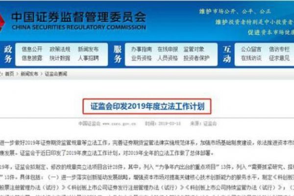 为进一步做好2019年证券期货监管规章等立法工作,完善监管法律实施规范体系,加强市场基础制度建设,依法推进资本市场长期稳定健康发展,证监会近日印发了2019年度立法工作计划,对2019年全年的立法工作做了总体部署。除了落实科创板相关规章进展外,一系列基金行业的规章制度也将在今年陆续出炉。