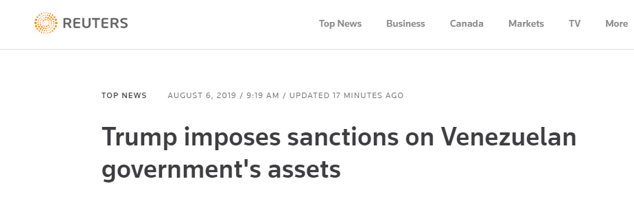 “委内瑞拉政府在美国的所有资产及资产权益…都被封锁,不得转让、交付、出口、撤销或以其他方式处理”,这项行政命令中这样写道。