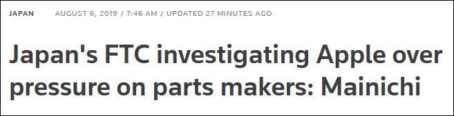 (观察者网讯 文/吕栋)据路透社6日援引日本《每日新闻》报道,日本公平贸易委员会(FTC)正在调查苹果公司对日本零部件制造商施加的压力,以及苹果是否违反反垄断规定滥用权力。