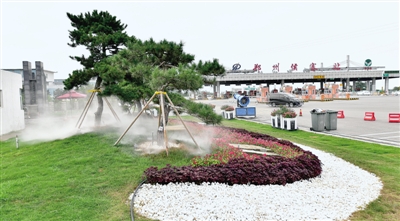 7日,记者在郑尧高速侯寨收费站出口处看到,高速两侧隔离栏上,一簇簇或粉或紫的长春花娇艳欲滴,一盆盆美女樱花开烂漫;在两侧绿化带中,以景观油松和景石为主景,周围点缀的金黄色波斯菊、彩叶草、白米石等层次鲜明,喜庆热烈,营造了热情迎嘉宾的浓厚氛围,成为全市高速互通立交及出入口氛围营造的一大亮点。