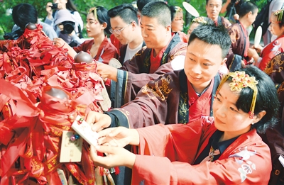 除了新技术让今年七夕与众不同,各地对传统习俗的推陈出新也为七夕增光添彩。8月7日晚7时30分,湖北省武汉市150对佳侣将身着汉服、手提灯笼,伴着悠悠的古琴声从沿江大道的两侧走上芦花栈道。