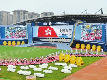 8月8日,中国·成都2019第十八届世界警察和消防员运动会开幕式在成都双流体育中心举行。当中国香港警队入场时,现场大屏上出现鲜红的香港特别行政区区旗,飘扬的紫荆花和“中国香港”四个大字异常醒目,全场爆发出热烈的掌声,看台观众纷纷起立鼓掌,高喊“雄起!”由衷表达对中国香港警队的敬意和支持。 四川日报记者 杨树 摄(相关报道见08版)