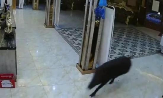 26日下午,事发时在KTV值班的KTV员工告诉北青报记者,23日晚11时许,一只野猪忽然闯进了KTV,“当时这只野猪忽然就冲了进来,先是进到了走廊里,然后又冲出来,撞上了大厅里的吧台,发出‘咣’的一声巨响,把吧台上的玻璃给撞碎了。”