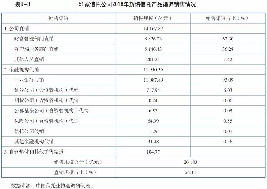 财富管理属于零售业务,起源于20世纪30年代经济危机结束后民众对资产管理的迫切需求。1970年前后,随着专业理财机构的不断涌现,财富管理行业得到重要发展。在财富管理已成为我国信托业战略转型方向的大背景下,截至2018年末,信托公司通过设立专门的财富管理部门、不断增配财富管理人员、在全国大中城市加大区域财富中心布局力度以及加强品牌建设等措施,财富直销规模和占比均达到一定水平,信托业在财富管理市场上的竞争力也不断增强。