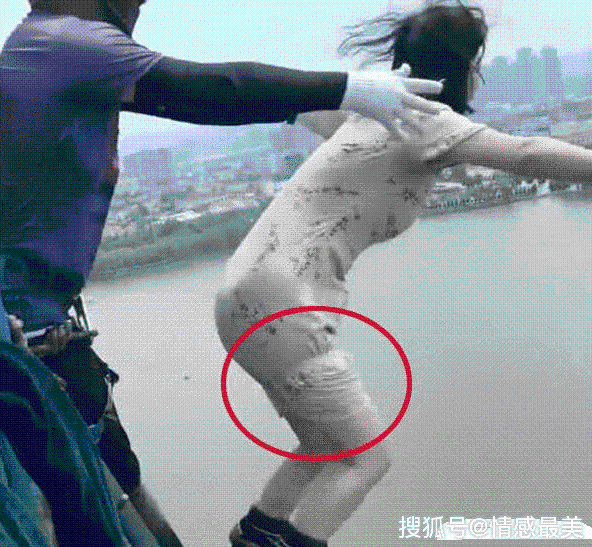 我们也可以看到女子在蹦极的时候是很激动的,她一点儿也没有害怕的心情,可能是已经体验过好多次了吧,可是这次她竟然是一个人来的,是不是失恋了想要来这儿放松一下呢,当她跳下去的时候,没想到她的裙子竟然没有飘起来,因为她是先就用胶布将自己的裙子缠到了大腿上,所以即使她倒立着也没有很尴尬的局面,后面的游客都很失望。本来等着看好戏的,谁也没想到还有这“骚操作”,这真是“太刺激了”。