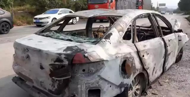 2019年10月5号,在浙江衢州,高速路上发生了一起追尾事故,之后一辆红色汽车着火,为避免影响他人安全,交警徒手将已经着火的汽车推到路边。