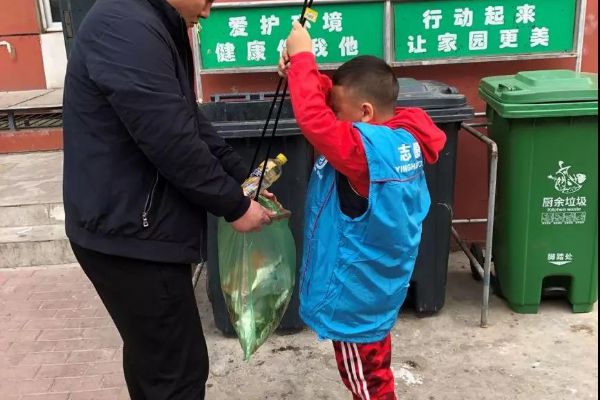 在第二周中,我们的家长和孩子们主要是针对自己所承包楼的垃圾分类工作进行宣传。他们利用居民扔垃圾比较集中的时间段到楼下进行巡视,对邻居们所仍的垃圾进行检查,并帮助他们把垃圾分好类后再进行投放。“叔叔,您好!您今天的垃圾进行分类了吗?”、“阿姨,下次记得要垃圾分类哦!”、“爷爷奶奶,我来帮您分类吧!”……一声声稚嫩礼貌的温馨提示不时地出现在我们所承包的50个楼内,不仅得到了邻居们的认可,而且也提高了居民们垃圾分类的主动性。孩子们表现和做法得到了居民们的肯定与赞扬。